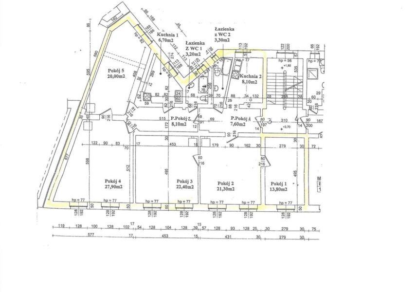 Lokal składa się z 5 pokoi, 2 kuchni, 2 łazienek z WC, 2 przedpokoi i 3 pomieszczeń przynależnych – piwnic. Instalacje: kanalizacyjna, wodna, gazowa, elektryczna, ogrzewanie piecami kaflowymi. Do remontu. Usytuowanie w budynku odbudowanym w 1968 r., w pełni podpiwniczonym, z cegły pełnej ceramicznej, 5-kondygnacyjnym. Lokalizacja w dzielnicy Drzetowo-Grabowo, w spokojnym otoczeniu: mały ruch samochodowy, Park im. Stefana Żeromskiego, Teatr Polski, Teatr Współczesny, Muzeum Narodowe, Zachodniopomorski Urząd Wojewódzki, bulwary nad Odrą, Wały Chrobrego.