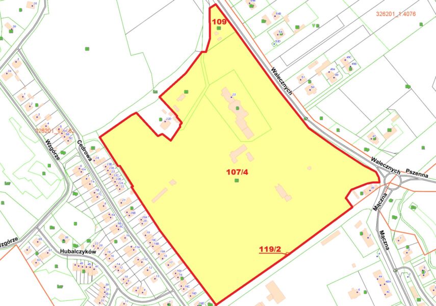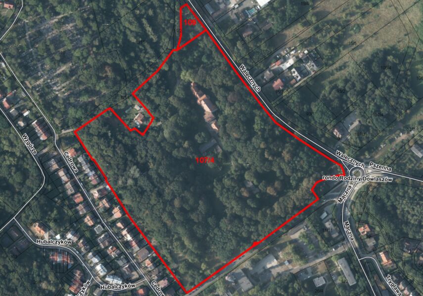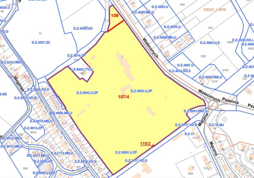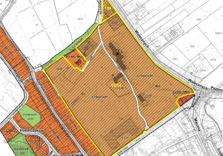 Działka nr 107/4, obr. 4162 położona jest w obrębie obiektu zabytkowego, wpisanego do rejestru zabytków województwa zachodniopomorskiego jako zespół budynków Domu Dziecka nr 2 im. Adama Mickiewicza (dawnego domu sierot) wraz z otaczającym go parkiem przy ul. Walecznych w Szczecinie, pod nr A-907, decyzją: KL.3-5340/28/88 z dn. 20.12.1988r. oraz zawiadomieniem z dn. 20.07.2011r., znak DZ-5130.111.2011.IW i podlega ścisłej ochronie konserwatorskiej.
