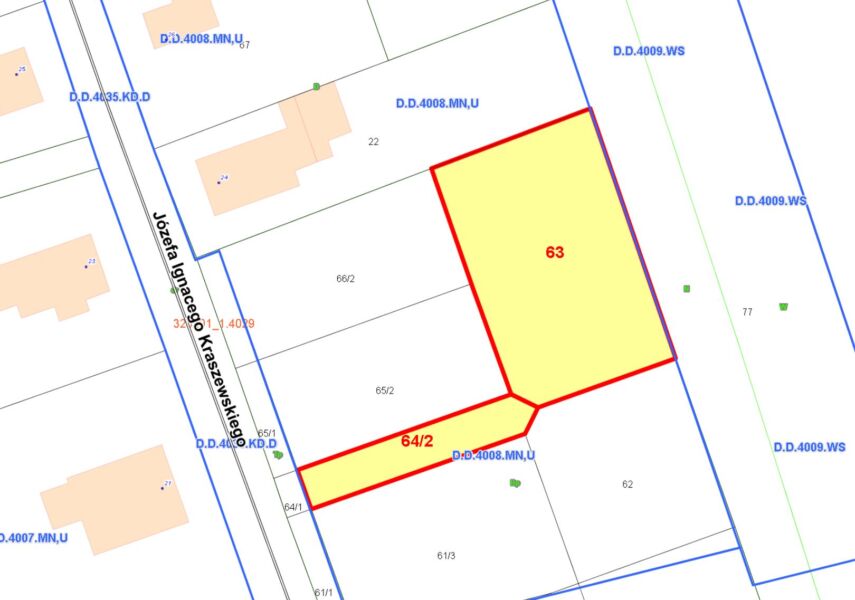 Nieruchomość pod zabudowę jednorodzinną położona w Szczecinie przy ulicy Kraszewskiego (dz. 63, 64/2 z obr. 4029)